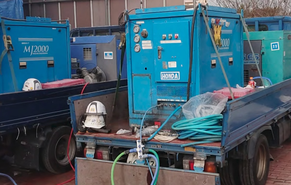 高圧洗浄車は8台保有、2名1組の8班体制で工期を遅らせる事のない様、万全の体制を心掛けています。