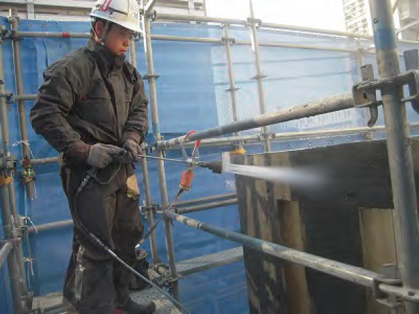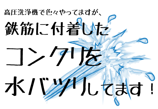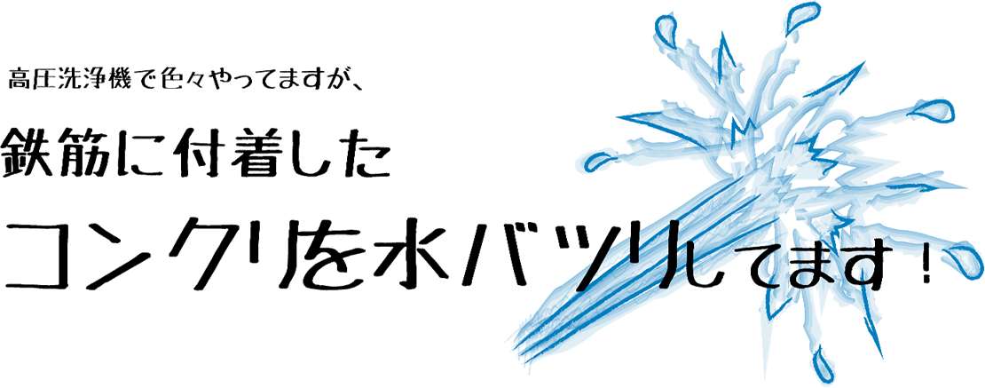 現在メインの仕事はコンクリートの水ハツリです。大手ゼネコン・サブコンの2次、3次請け、小さな工事現場など、工事現場で発生した「あっ!?」と思ったその時に本多タイル工業は工事現場へ駆けつけて、コンクリートを水ハツリし鉄筋を綺麗にしています。